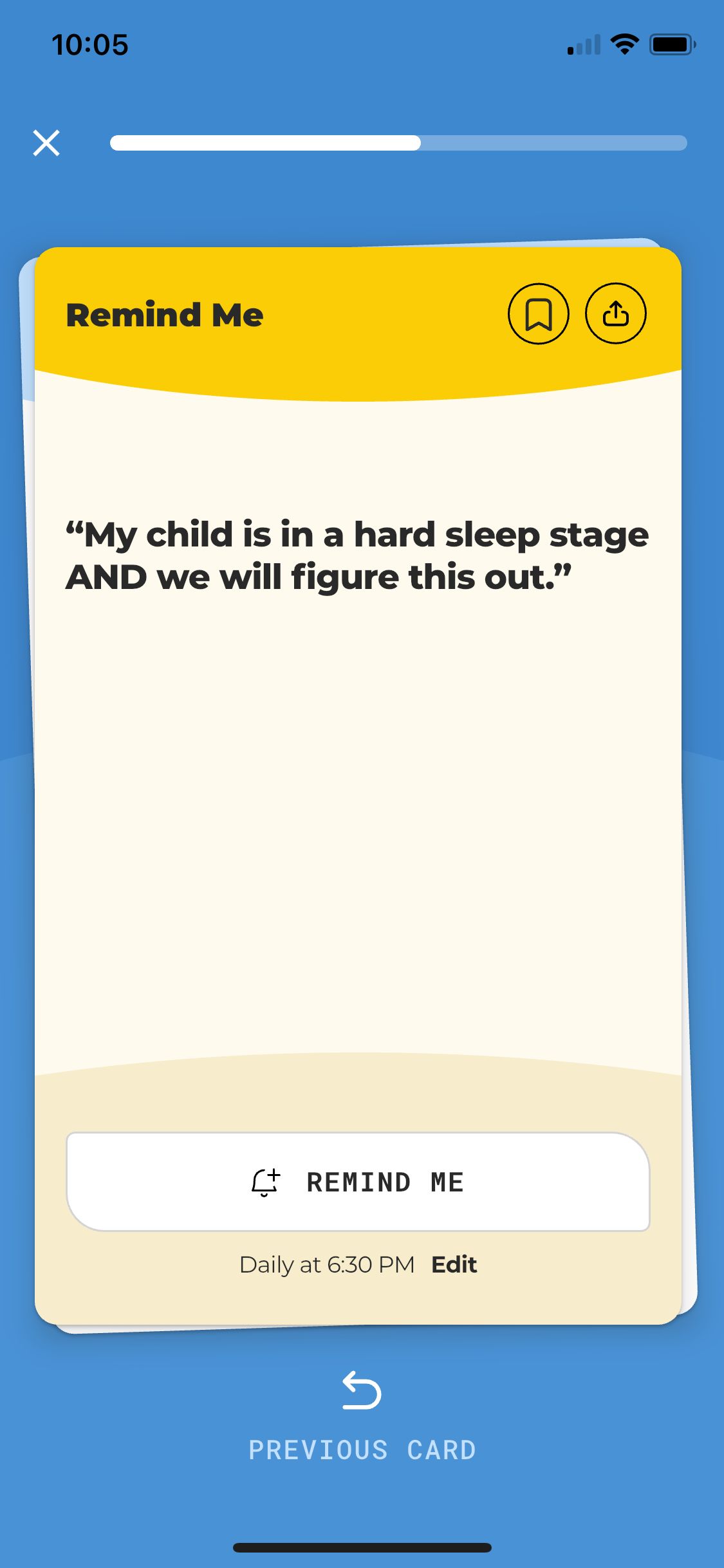 One of the cards suggesting a daily reminder