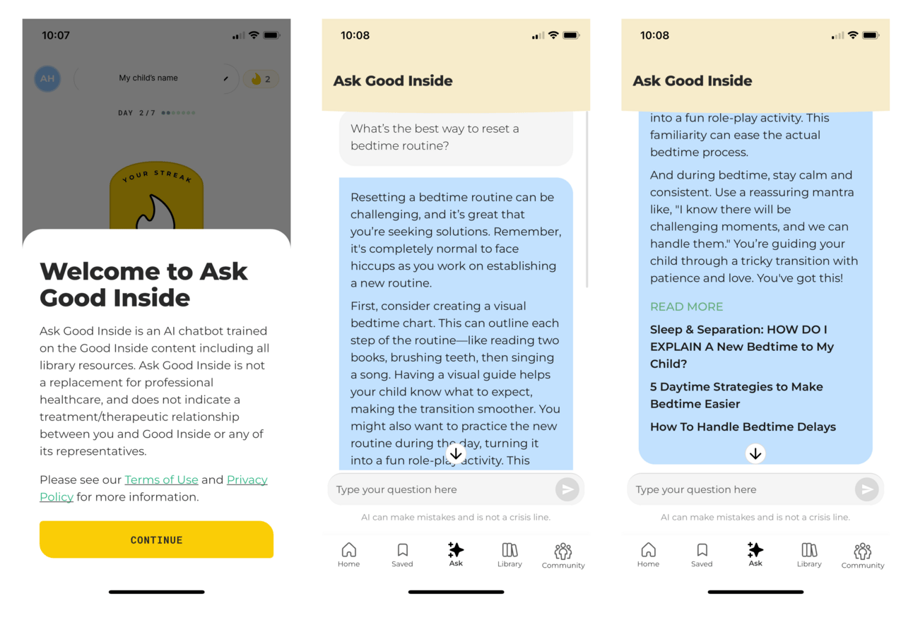 I was skeptical, but this app is transformative. It has changed my life and I think you should try it with your own parenting challenges. And, as far as I can tell, if you have a Good Inside membership, you have access to this app and the AI. Multiple parents I spoke with were unaware they could already use it through their existing memberships.